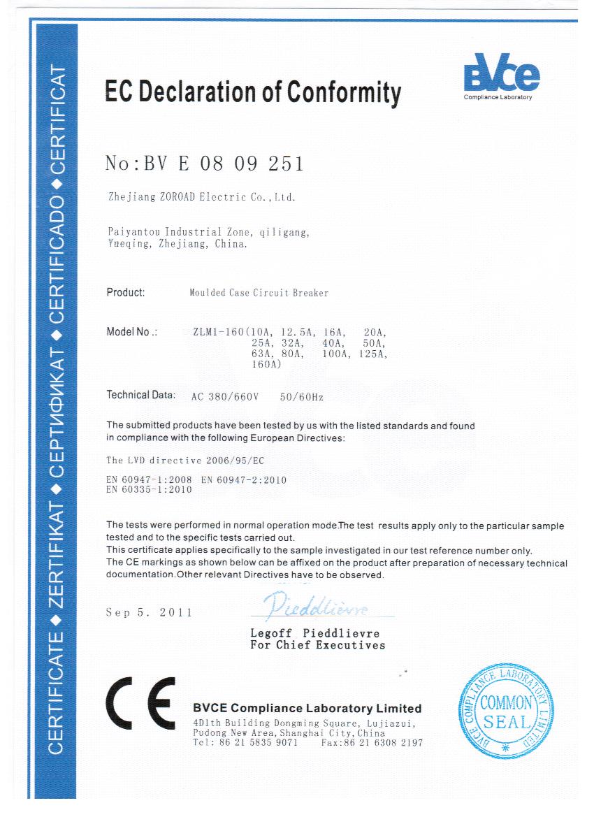 The breaker cpmplies with the standard of IEC60947-1、IEC60947-2、GB14048.2 etc.